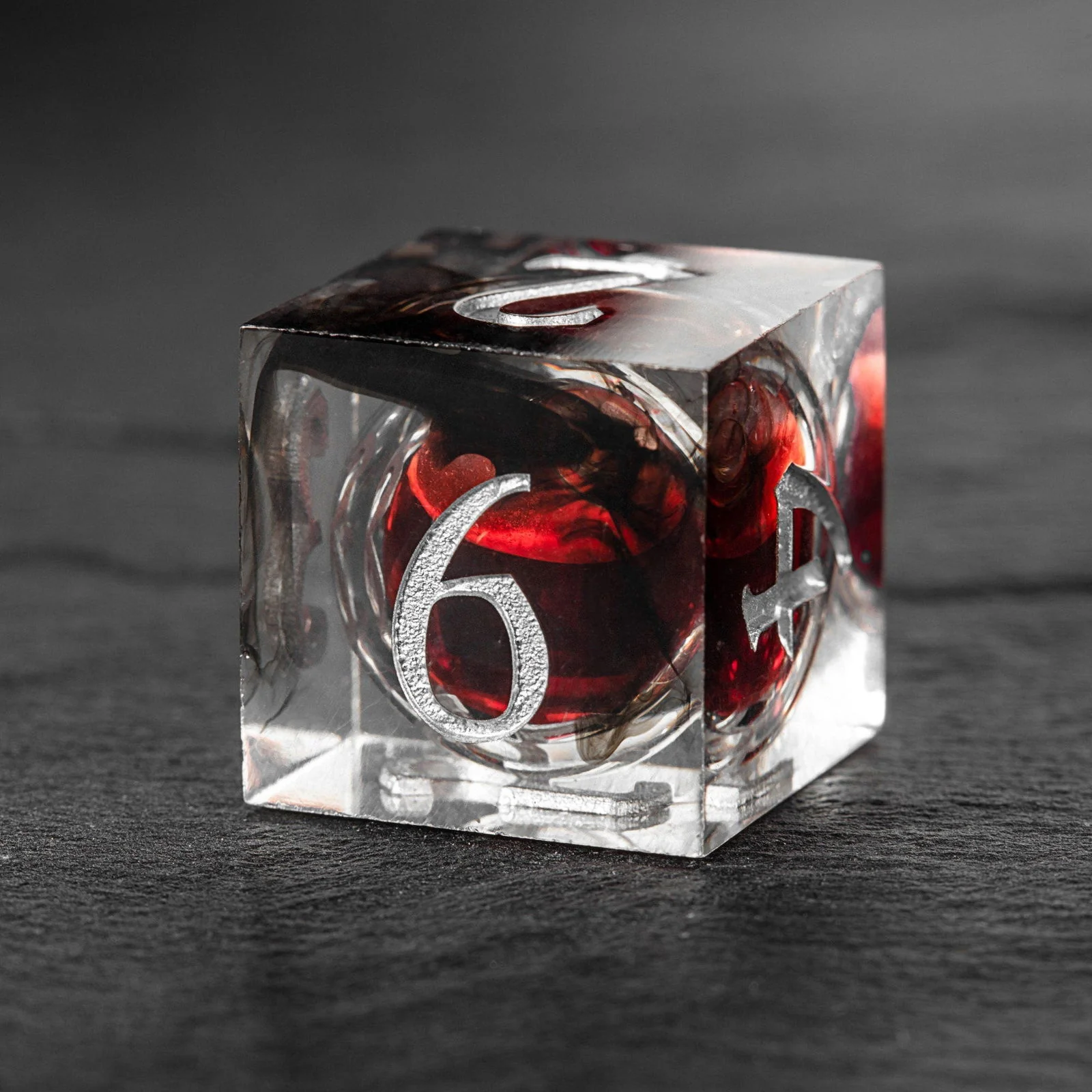 Blood Red Liquid Core Resin Moon DnD D&D Dice Set