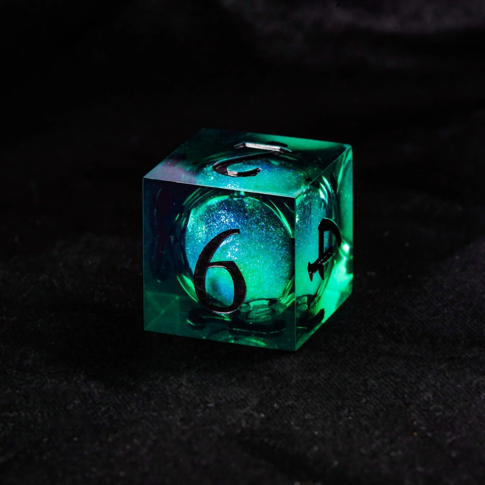 Green Liquid Core Resin Galaxy Dice Supernatural Anti-possession DnD D&D Dice Set