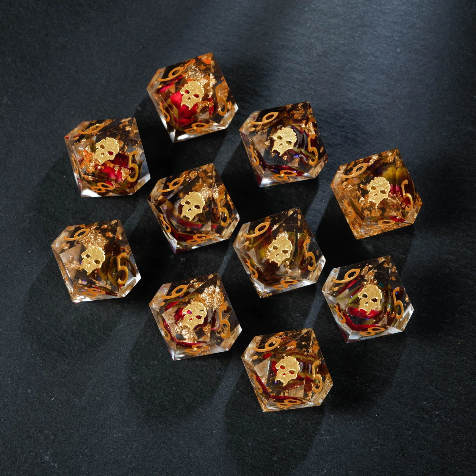 Rose Bud Glitter Resin Vampire Dice D10